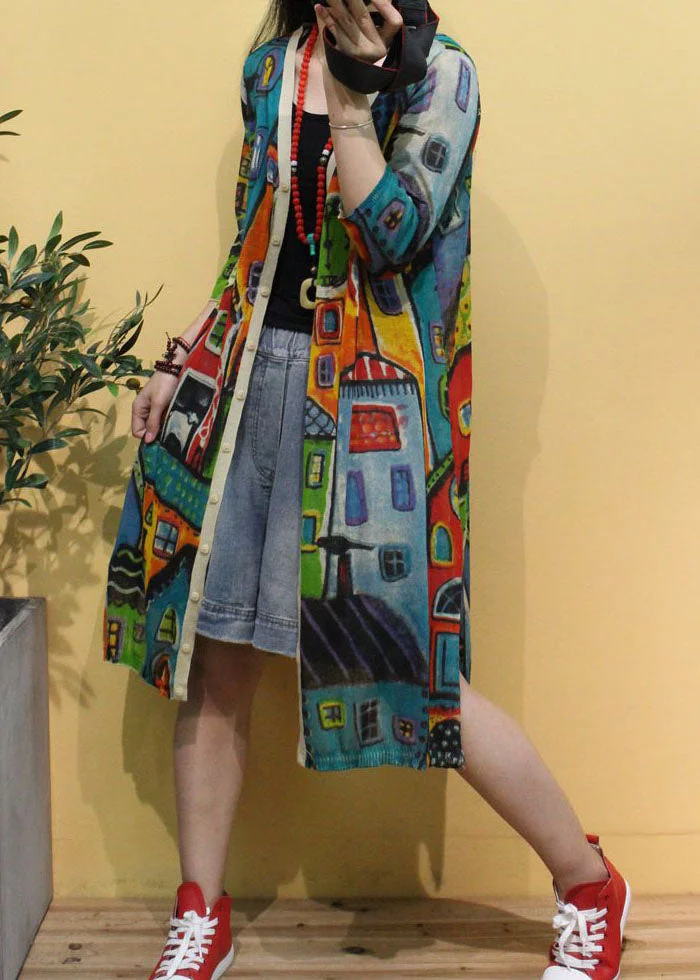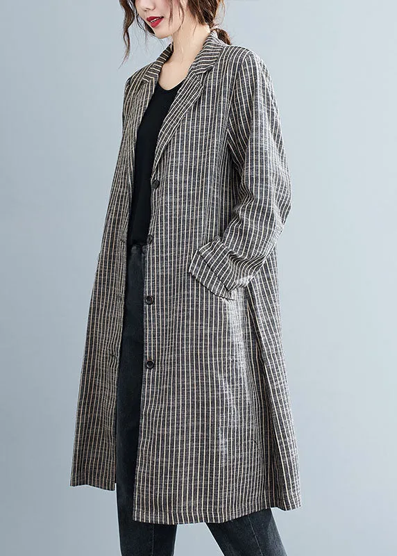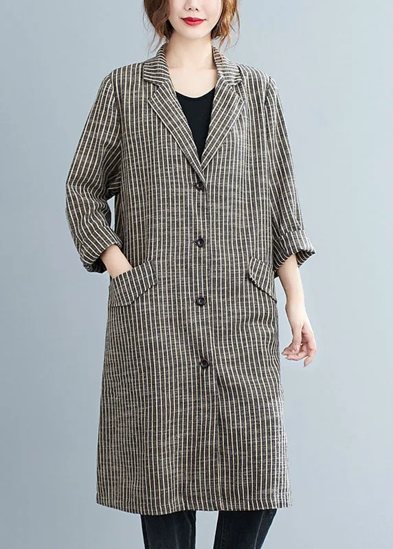 Plus Size Khaki PeterPan Collar Button Pockets Striped Fall Long sleeve Trench coats