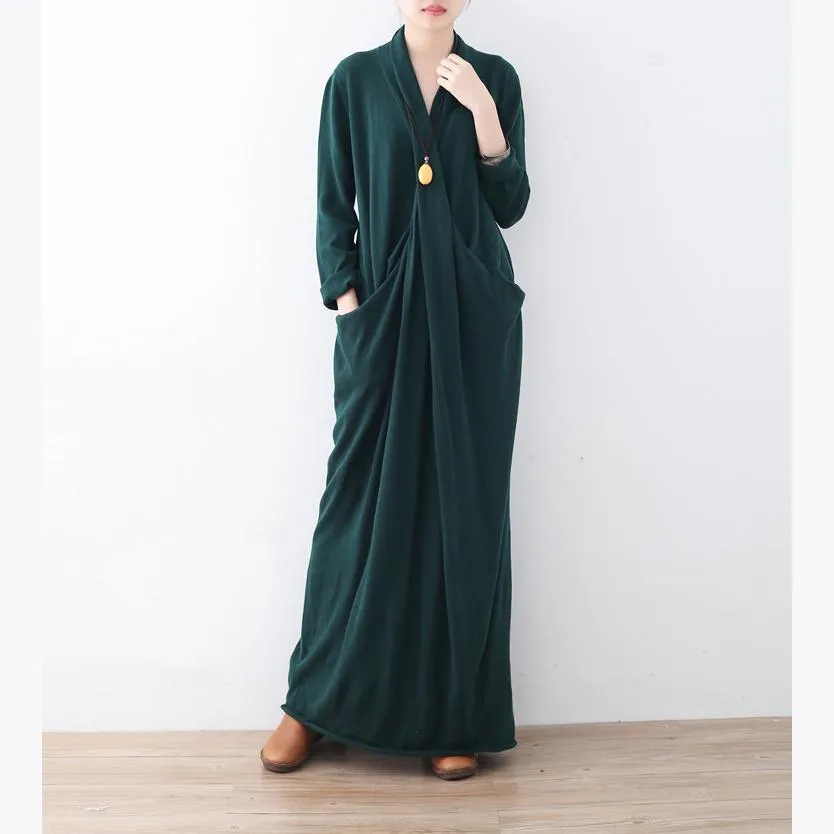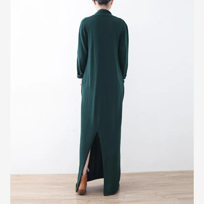 Warm green long sweaters Loose fitting sweater fine asymmetric winter dresses