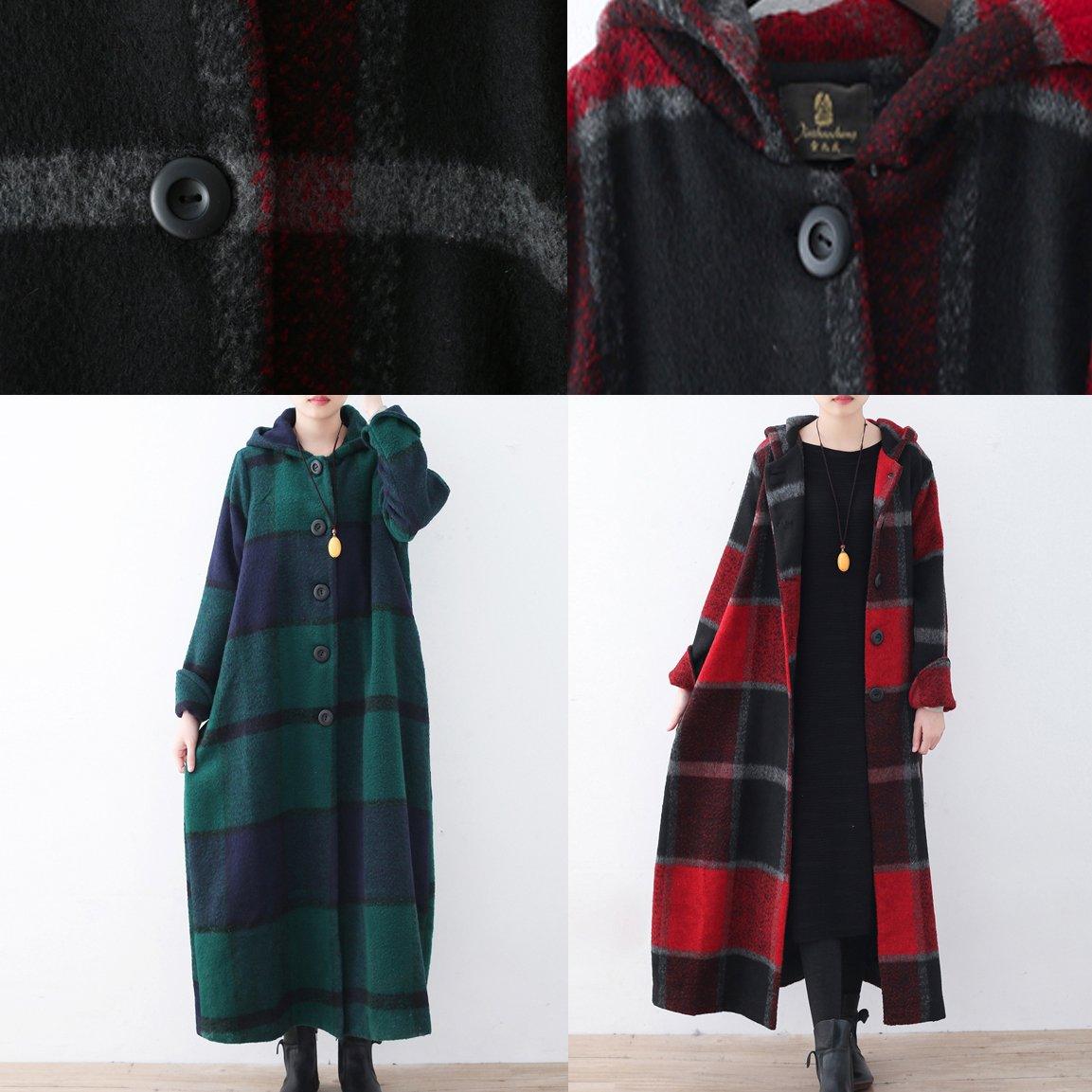 Boutique Green Long Woolen Coats Winter Plus Size Cardigans Fashion Plaid Long Coats Hooded