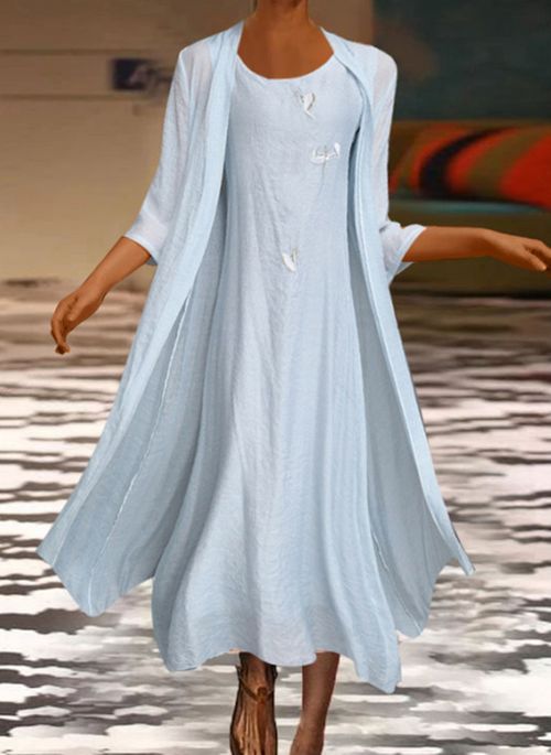 Solid Tunic Round Neckline Maxi A-line Dress