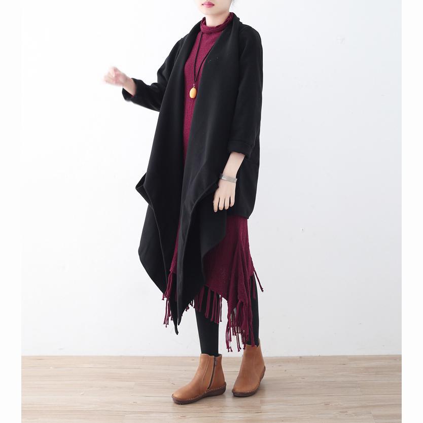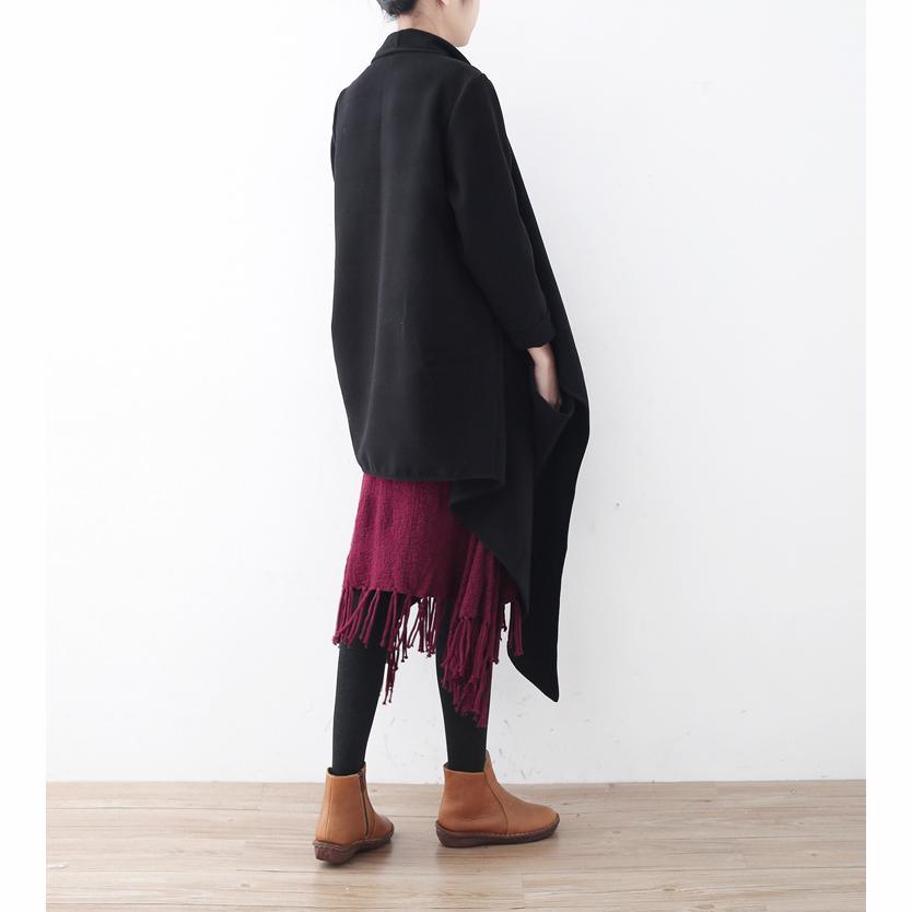 vintage black woolen Jackets & Coats plussize wool jackets Elegant long coats asymmetric hem