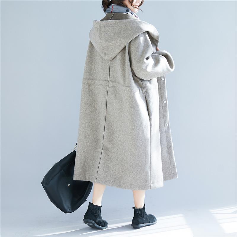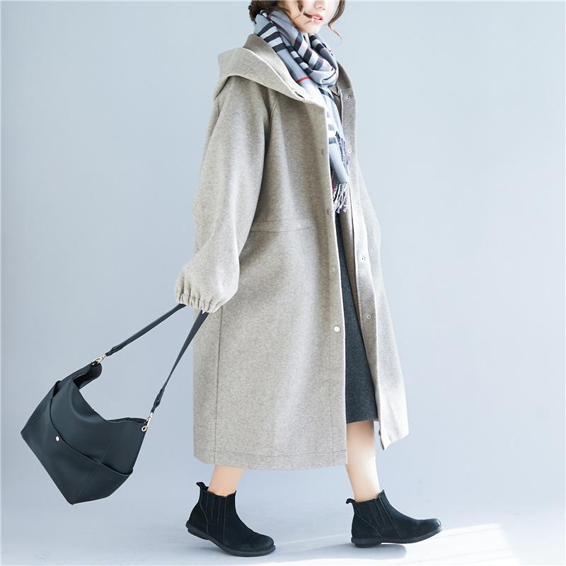 vintage light gray Wool jackets casual long hooded coats