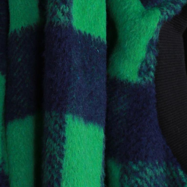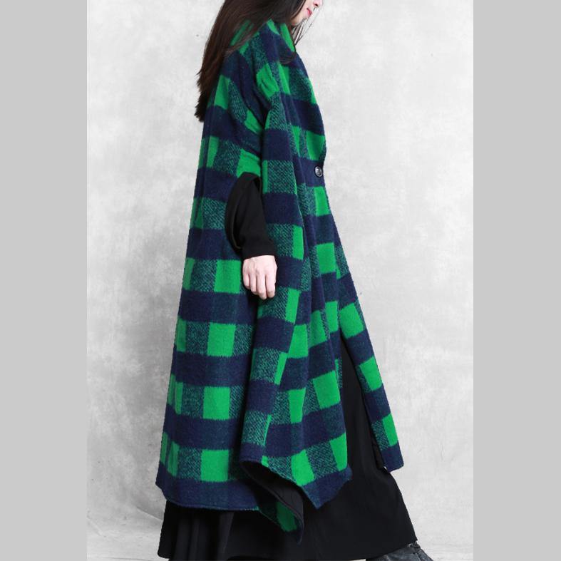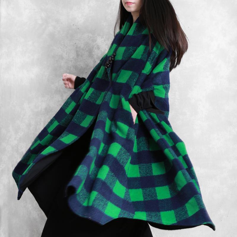 women casual Jackets & Coats green plaid Batwing Sleeve patchwork wool overcoat